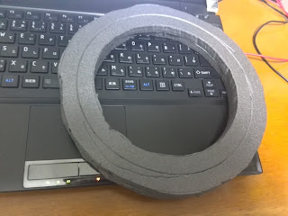 100円ショップなどで売っている大きめの発泡スチロール板を円形(スクラッチ直径+2cmほどで)に切り取ります。